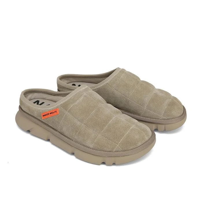 Montana, the closed toe puffer slide made with leather lining and suede upper – featuring new rubber side logo.Â
